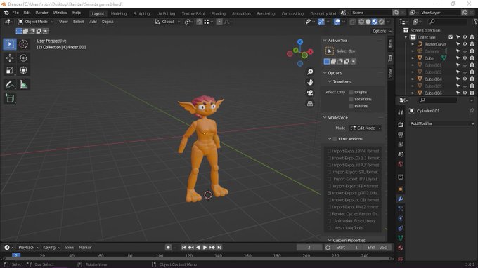 Perdí toda la semana por inconvenientes y salud mental, pero empiezo a levantarme. El modelo está empezando a tomar forma, empiezo a aprender algunas cosas que me servirán a lo largo de toda mi carrera. -__-)9 #Blender3d #b3d #myart