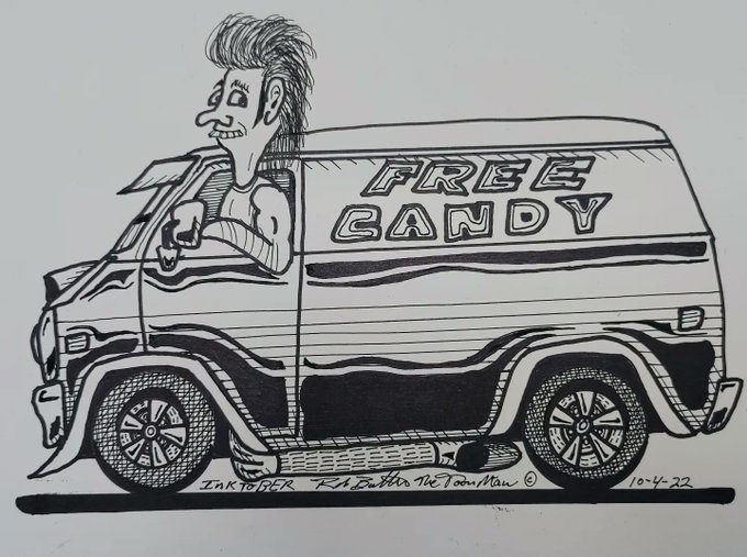 0 6 #inktober2022 Free candy 70s van #robthetoonman #sasquatchartworks #automotivecartoons 22/10/05 04:47