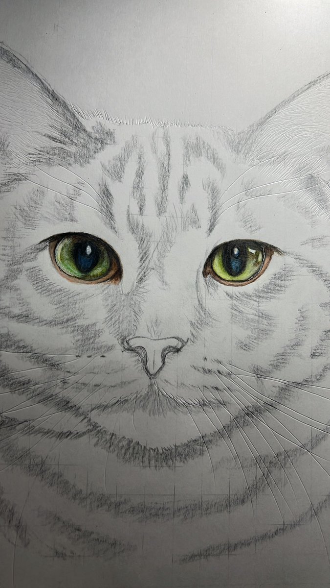 制作中の猫様です✍🏻 ひたすら細かく丁寧に勉強しながら描いてます🤗 #色鉛筆画 #猫のいる暮らし #coloredpencildrawing #colordpencilart #cat #CatsOfTwitter
