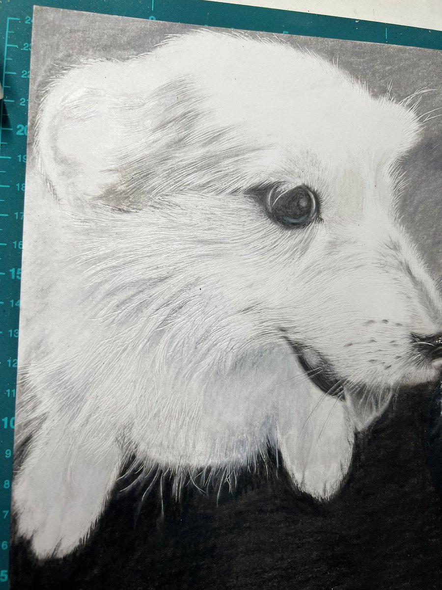 気まぐれ店長のミーチャン@sasaki_trc 黒バックがテカってるぅ〜✍🏻💦 白猫チャンを描くのは難しいけど頑張りますよぉ #色鉛筆画 #cat #CatsOfTwitter #colodpencilart #coloedpencildrawing