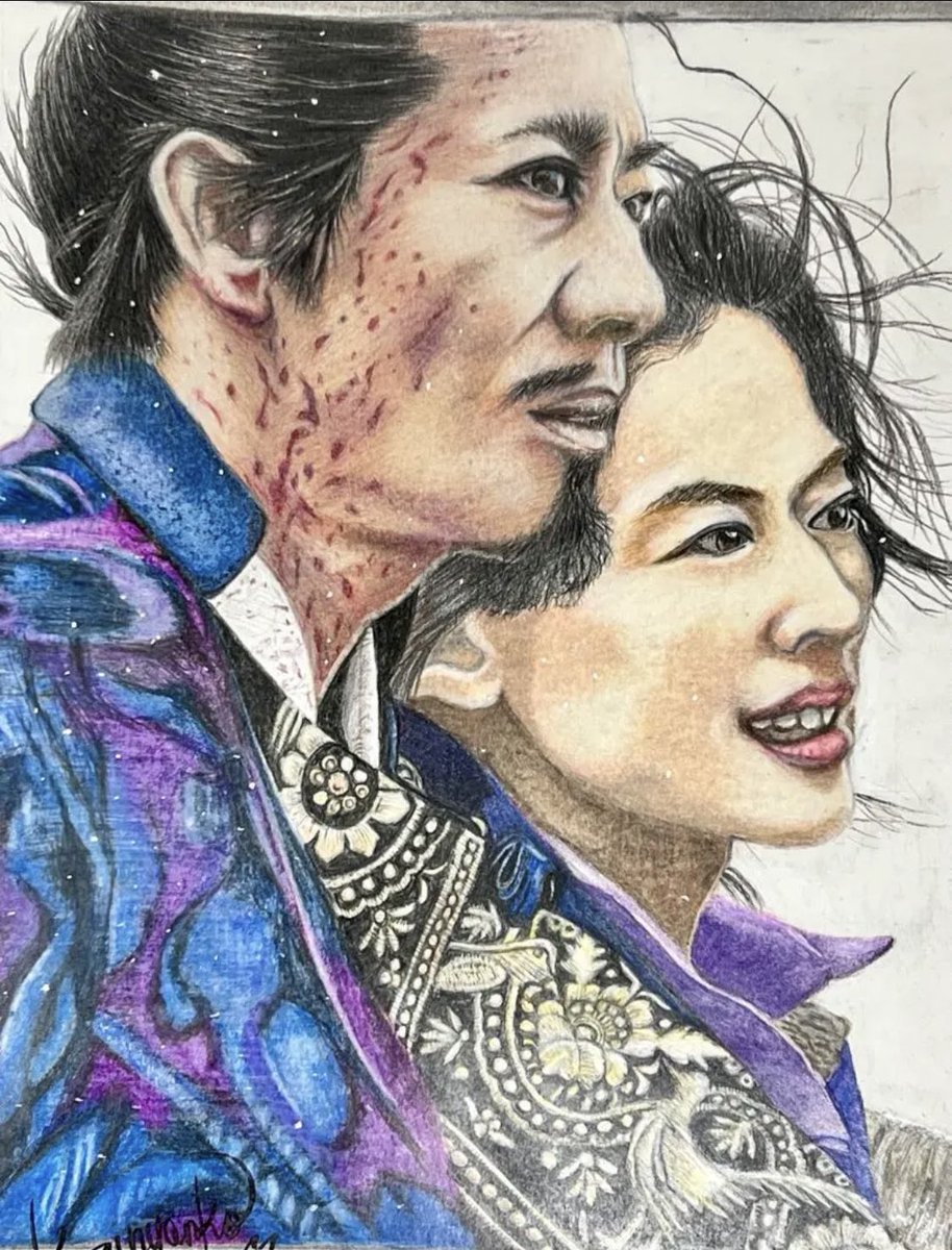 やっと完成しました✍🏻 人物画ってほんとに難しかったぁ〜💦只でさえ下手やのに‥でも勉強になったかな🧐またチャレンジします👍🏻 #LEGENDandBUTTERFLY #木村拓哉 #綾瀬はるか #色鉛筆画 #colodpencilart #coloedpencildrawing