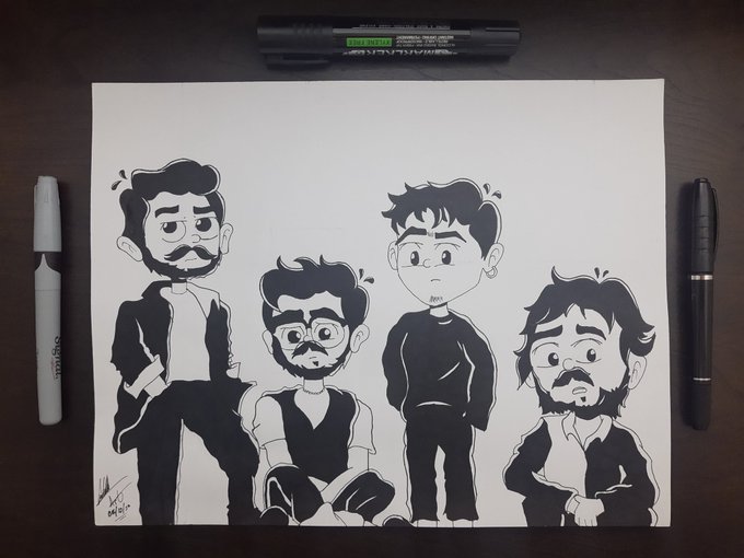 Uno de los mejores dibujo hasta ahora. #inktober2022 día 6: @JuanPabloIsazaP, @jpvillamil8, @SimonVargasM, @martinvargas_96... @MoratBanda ✏️🎶 #drawing #draw #dibujo #art #Artist #creativity #InkDrawing