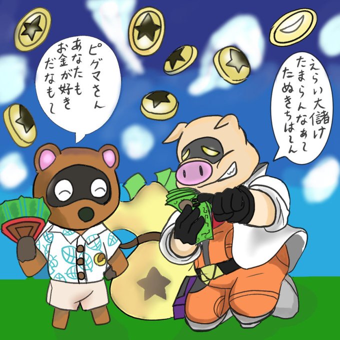 2 10 過去絵ですがどう森トスタフォがコラボできたら嬉しいなという妄想に浸りながら描いたものです・・ 2人は守銭奴 21/03/09 21:12
