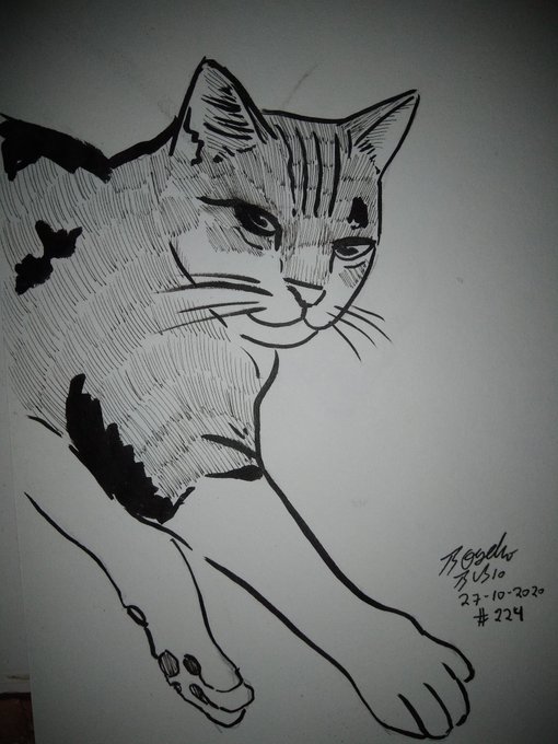 "DarkTober" #27 #Miel #ilustracion #ilustration #224 Art by #RogelioRubio #365Drawingdays #sketch #Draw #ink #Dibujo #Black #mexico #colima #Art #world #mexican no es #inktober es #Darktober #blackandwhite #arte_con_any #cat #neko #miaw #meow #nya Mi gata posando :3