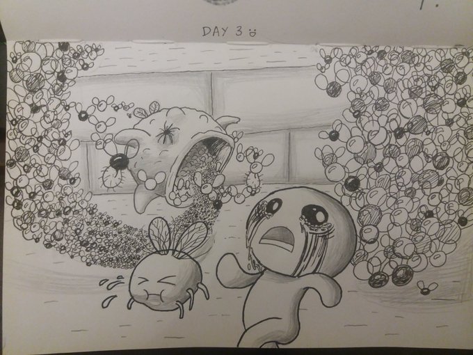 Day 3 duke of flies, i wonder if duke of flies have little fly wings on his back.... @edmundmcmillen #Isaactober #Inktober2019