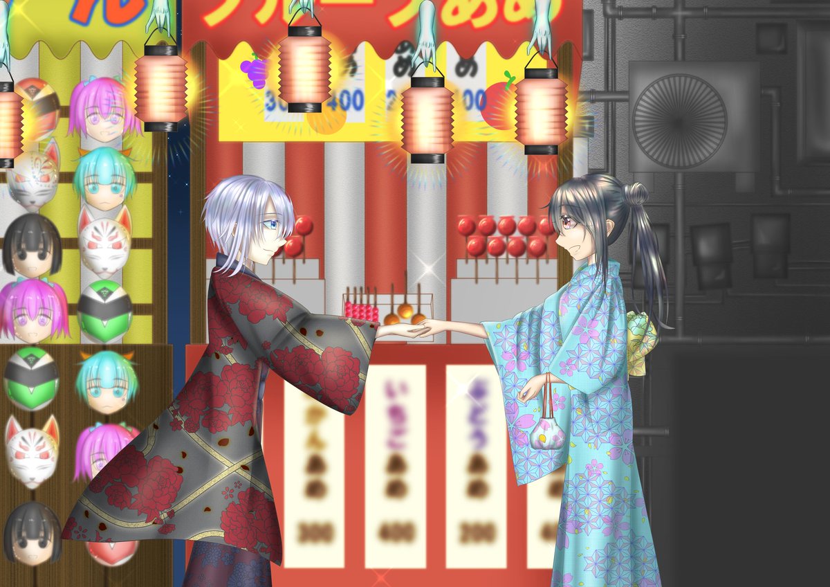 #オリジナル #イラスト #夏祭り 化かされていることにも気づかない。
