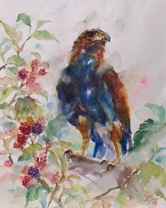 2022年12月21日(水)から、銀座ミレージャギャラリーにて開催されるグループ展「2022年展」で展示する作品のうちの一枚。 透明水彩 F6サイズ #水彩画 #ハリスホーク twitter.com/Roku89/statu…