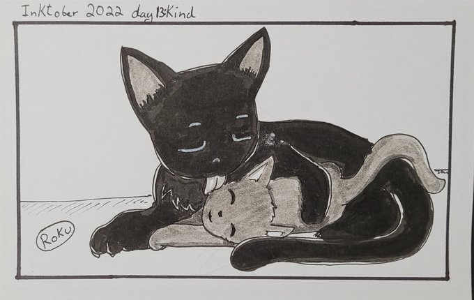 Inktober 2022 day 13 : kind I drew my 2 cats : kuro and maya #Inktober #inktober2022 #inktober2022day13 #inktober2022kind #cats