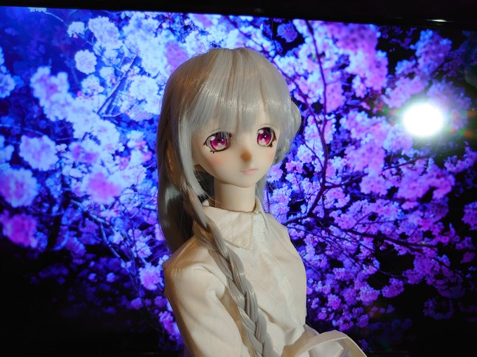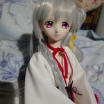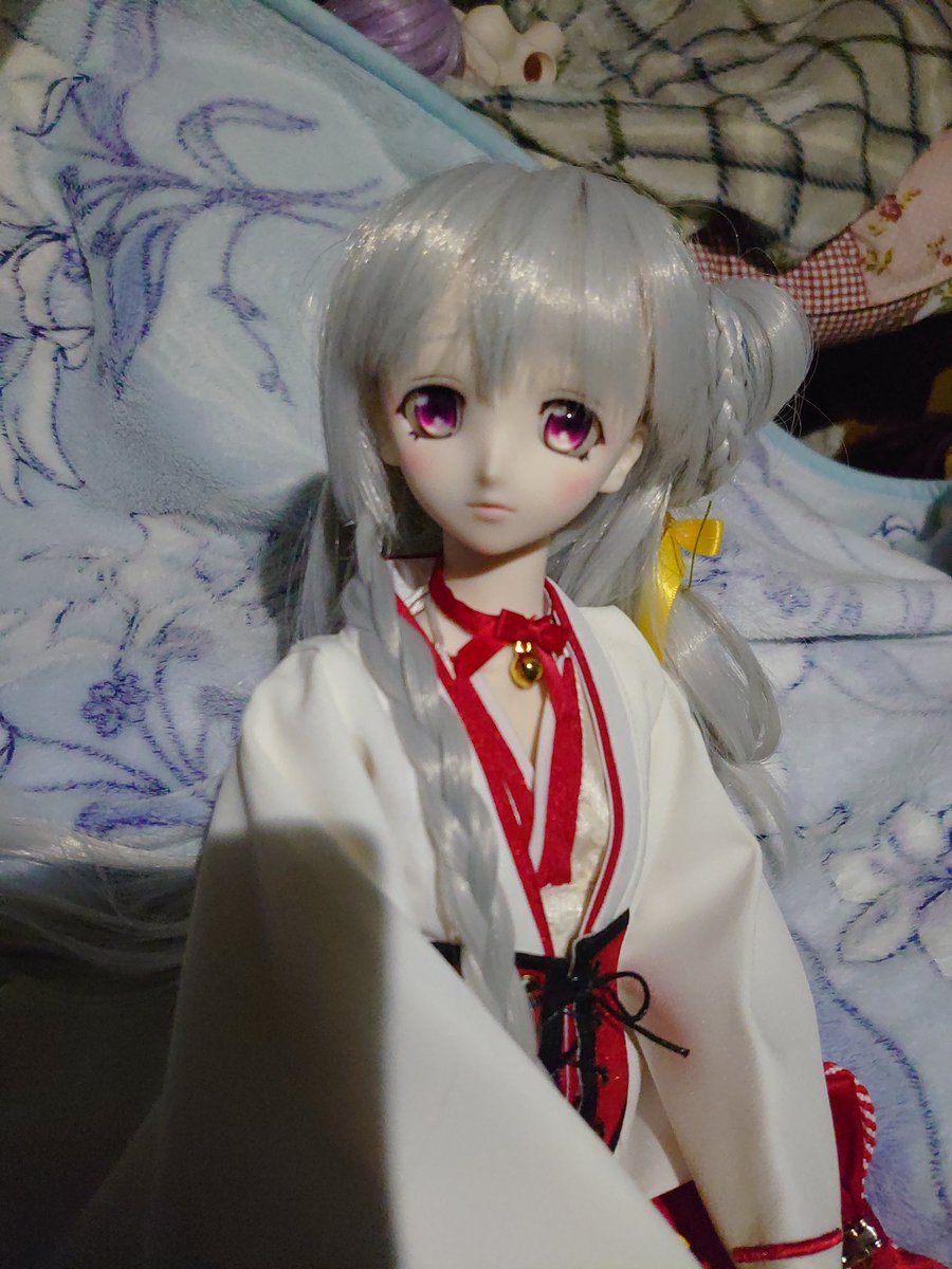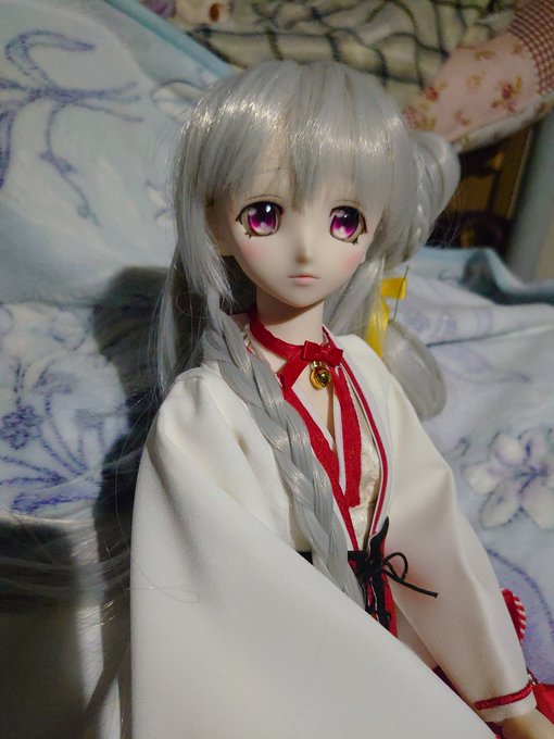 #僕が夜桜たまにできること 素敵なタグを拝見させて頂いたので夜更かし撮影会 ドールオーナーでもあるらしい #夜桜たま ちゃんを応援するためにたまちゃんモデルにメイクした娘 とりあえずハロウィンらしいので巫女コスで 読み返したら前に写真上げた時は何伝えたかったのか分からなかった #TamaArt