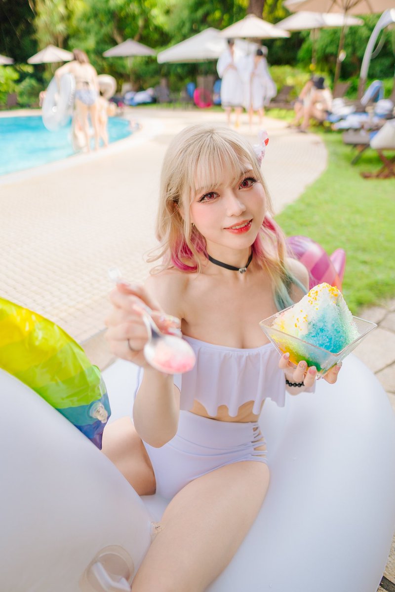 🌈髪色と同じのかき氷🍧甘くて美味しい☀️ #喜多川海夢 #その着せ替え人形は恋をする #着せ恋 #コスプレ