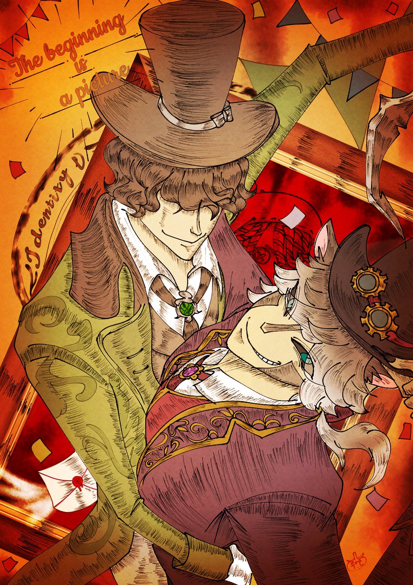 5周年イラコンにエンジョイしながら参加させていただいた2つ目の絵の全体図。 5周年おめでとう、第五人格! #第五人格イラスト #IdentityV5周年イラコンFA #第五人格5周年記念イラストコンテスト