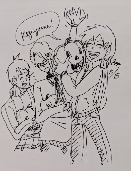 Quick sketch of the first year #haikyuu crows as third years, carving jack-o-lanterns. I love drawing #tsukishima with longer hair! ^^ #inktober2020