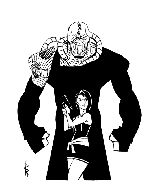 One minute late is nothing! #inktober2020 prompt #8 was "Teeth" so I drew the toothiest villain of all--Nemesis! No nose either. We don't talk about that remake around these parts, amigo. #ResidentEvil3 #RE3 #Nemesis #Capcom #JillValentine #Stars