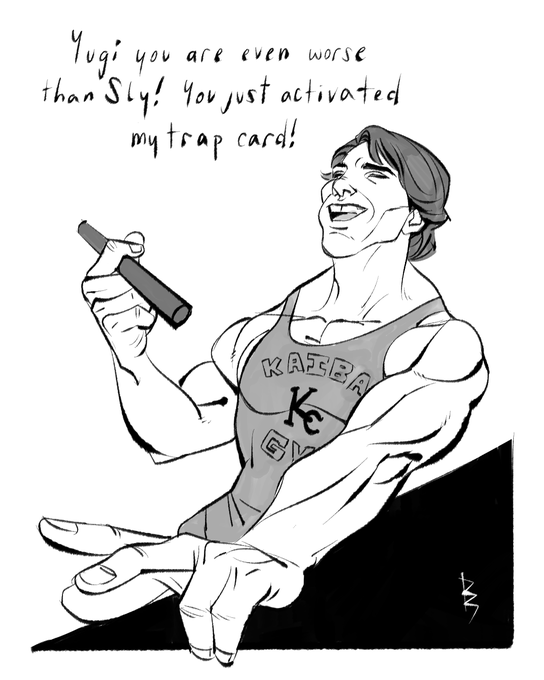 The #Inktober prompt was "Trap" and when I think of traps, naturally I think of @Schwarzenegger So I drew Arnold kicking Yugi's butt! #inktober2020 #SylvesterStallone #YuGiOhTCG