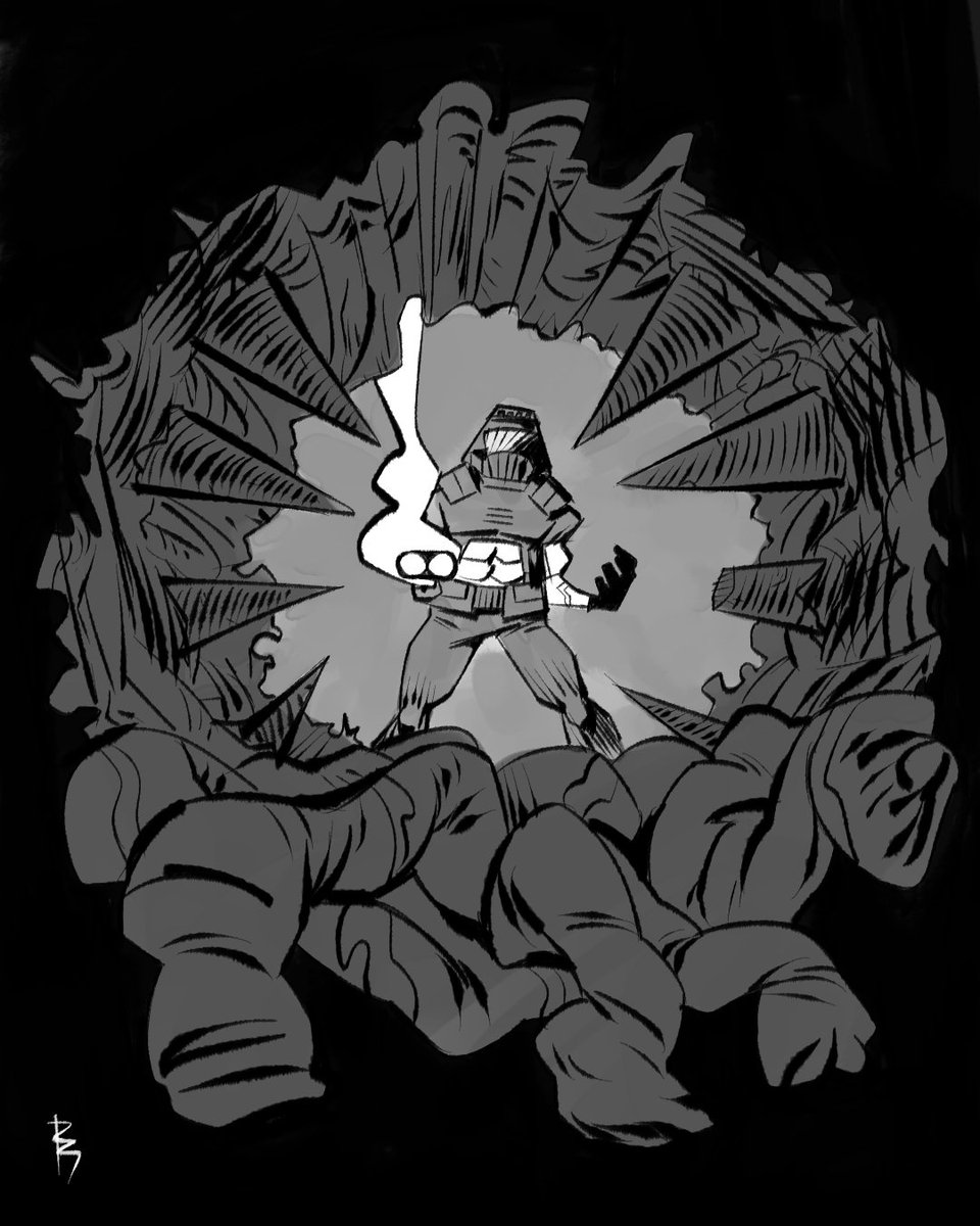 Inktober prompt was "Rip" but they IMPLIED "...and Tear" so of course Doomguy was what I drew. Oh btw never EVER watch that horrible new DOOM movie on Netflix. It's like a bad Syfy channel movie that couldn't even get on Syfy. #Inktober #inktober2020 #DOOM #doomguy #ripandtear