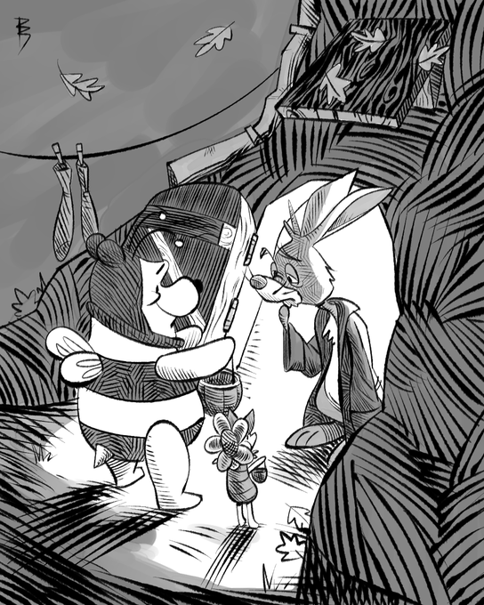 I don't know much about properly cross-hatching so I used todays prompt as practice. The word was "Buddies" so I drew everyone's buddy. #digitalart #inktober #inktober2020 #winniethepooh #halloween #hunny