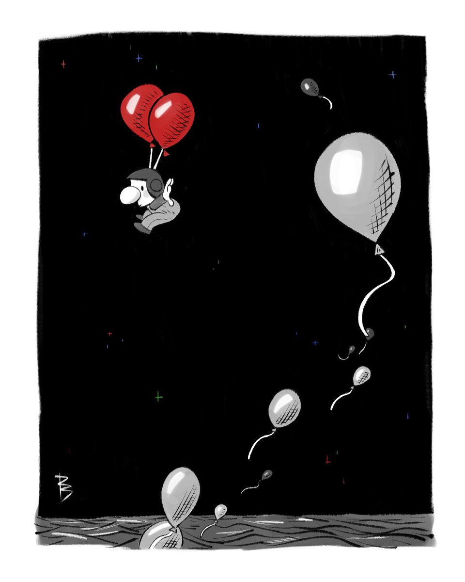 "Float" I have always enjoyed stars in old video games when they were like single pixels and were different colors. #Inktober #inktober2020 #Nintendo #BalloonFight #Balloons #Float #Floating #NES