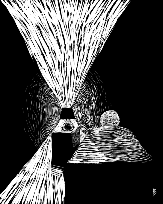"Ominous". I'm don't fully grasp how to make a piece truly horrific and I know almost zero artists that I believe do horror well. Lol I actually used that episode of Billy and Mandy when Billy has a nightmare for reference as it really frightened me as a kid. #inktober2020