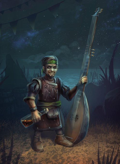 I was puzzled what there aren't no depictions of Kent Plucker from @CriticalRole , so I've solved that problem. It is a known fact, that he's an epic lutenist, so the only right instrument for Kent was a bloody Theorbo! #criticalrolefanart