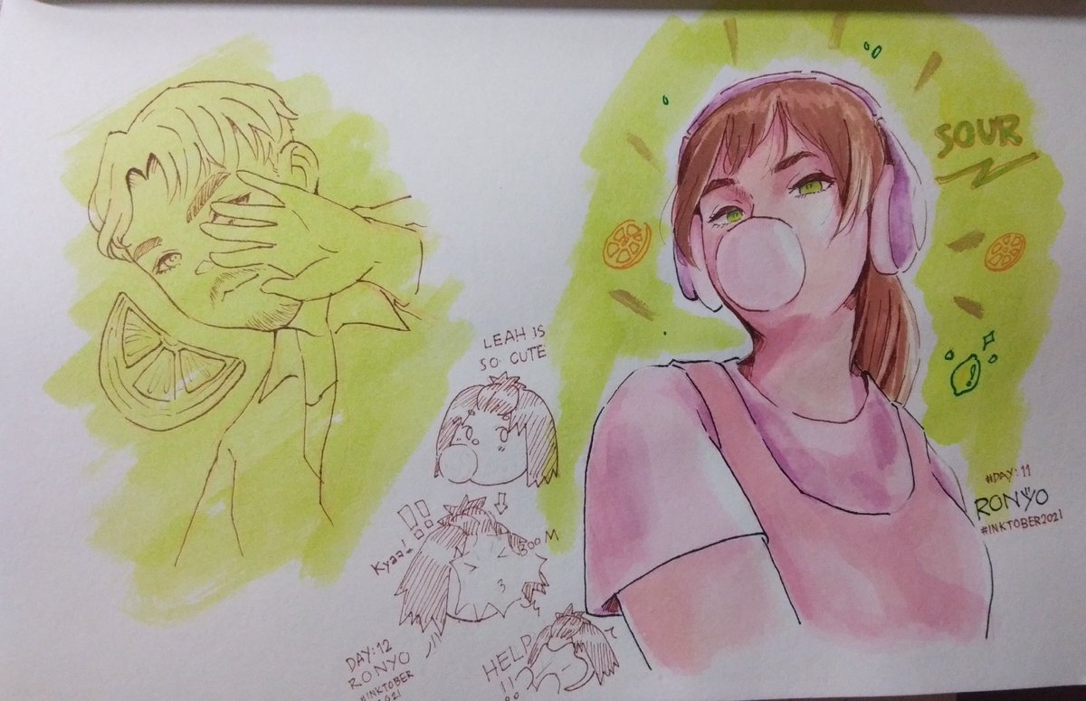 [Inktober] Day 11 : Sour bubble gum 🍋💚 #inktober2021 ไม่ตรงโจทย์เท่าไร แต่ก็ถือว่าวันนี้ได้วาดรูปแล้วนะ😂 (P.S. if you think you have seen this lady before.. yes I got references from Leah💖 one of lady keepers 🥰🥰)