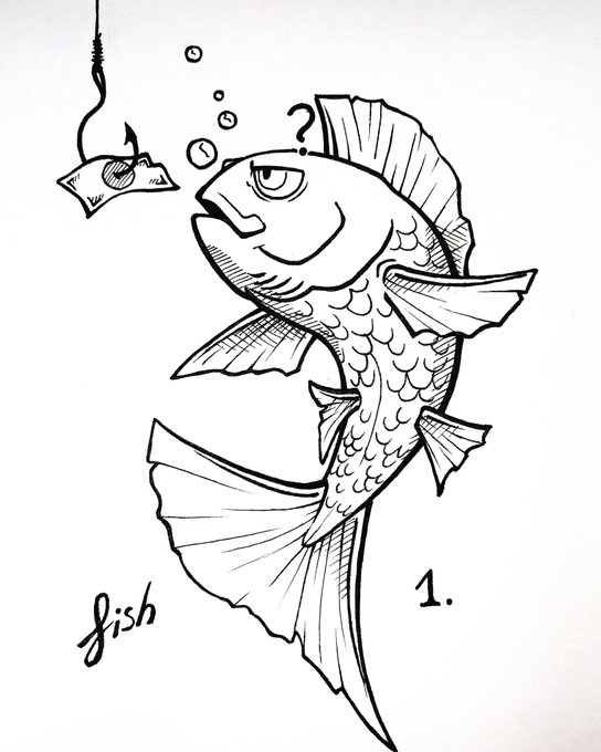 So es ist wieder soweit, es ist Inktober. 🥳 #inktober2020 #inktober #fish #bait #ink #drawing #illustration #tusche #zeichnung #fisch #tattoo #köder #geld #money #veronikawunderer