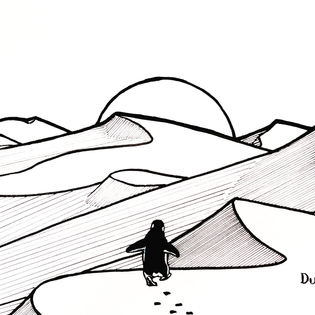 Und hier kommt gleich Nummer 12 #inktober2020 #Dune #ink #tusche #inktober #drawing #zeichnng #desert #wüste #penguin #pinguin #dünen #illustration #illustrator #veronikawunderer