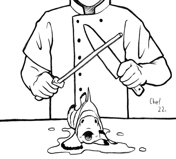 Oh nein Nemo ist in Gefahr 😱#inktober2020 #ink #tusche #drawign #zeichnug #chef #koch #clownfish #clownfisch #nemo #fisch #fish #illustration #illustrator #veronikawunderer
