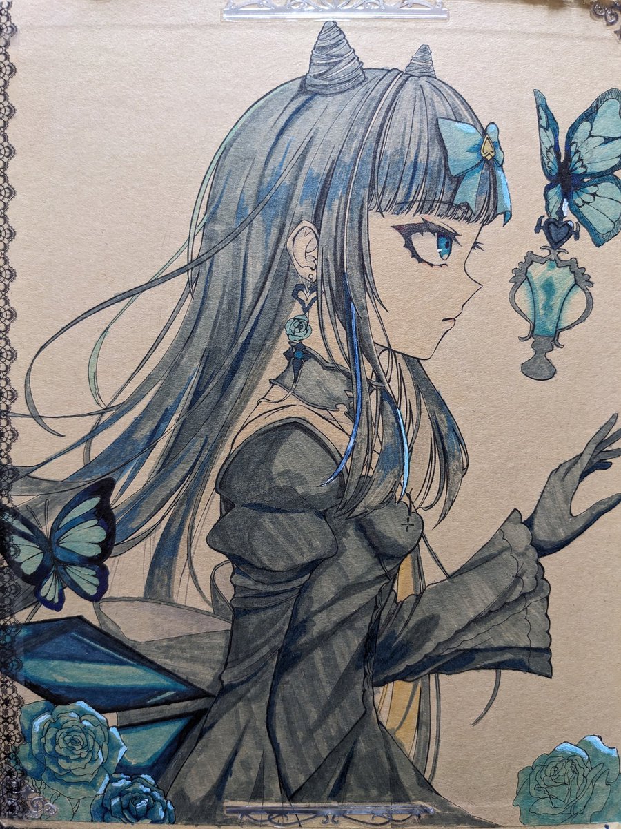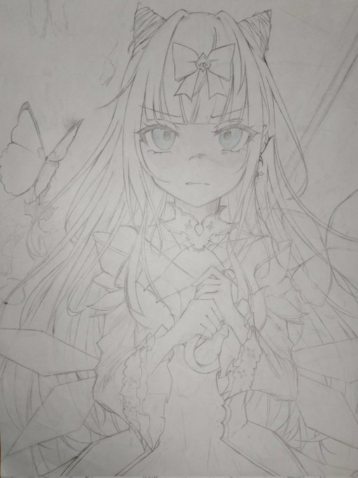 #arcaea_art #arcaea #イラスト #絵柄が好みっていう人にフォローされたい Wip~ ちょうちょヤバくない??(語彙力) 分かりづらいかもしれませんが髪を結構塗り塗りしてました~! 次は奥の方のちょうちょくんが標的ですねぇ~......