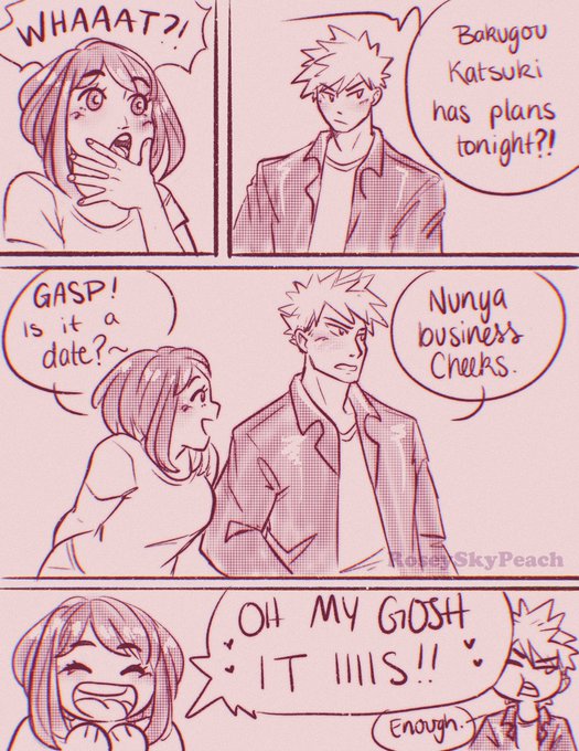 And this is how Uraraka found out she had feelings for Bakugou. Oh the angst that would ensue once these feelings become more and more prominent with every time they hang out. #kacchako