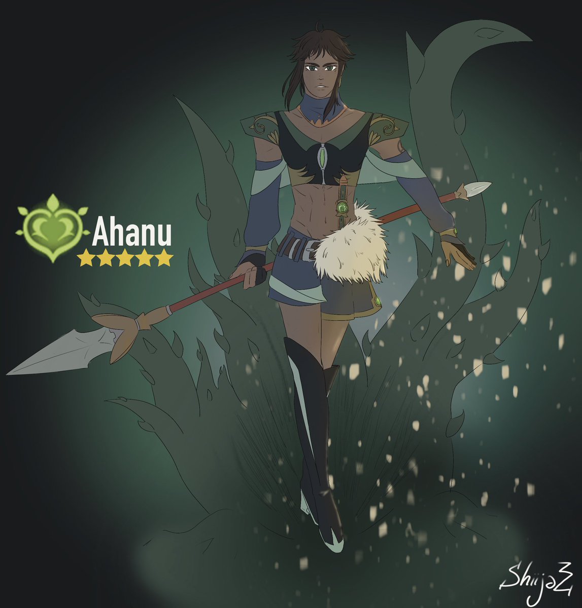 I’m not sure about the palette but, here Ahanu, my Dendro #genshinimpact #oc (every pronunce is perfect for Ahanu!) #genshinoc #genshinimpactoc #originalcharacter #genshinfanart #fanart #genshinimpactfanart