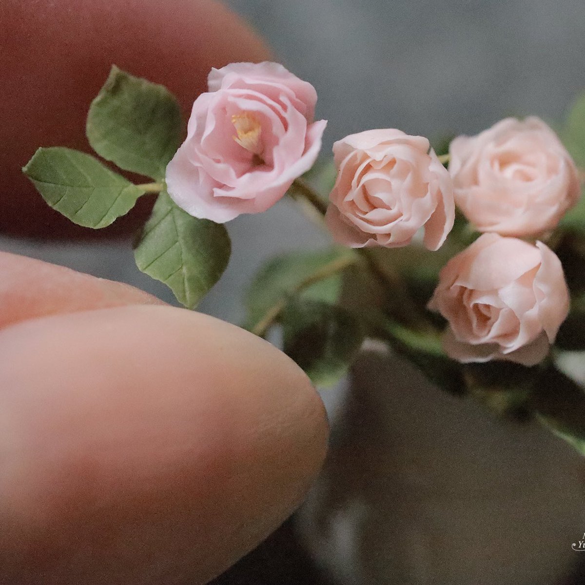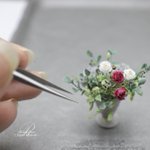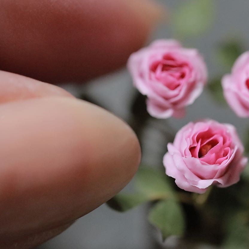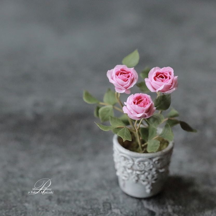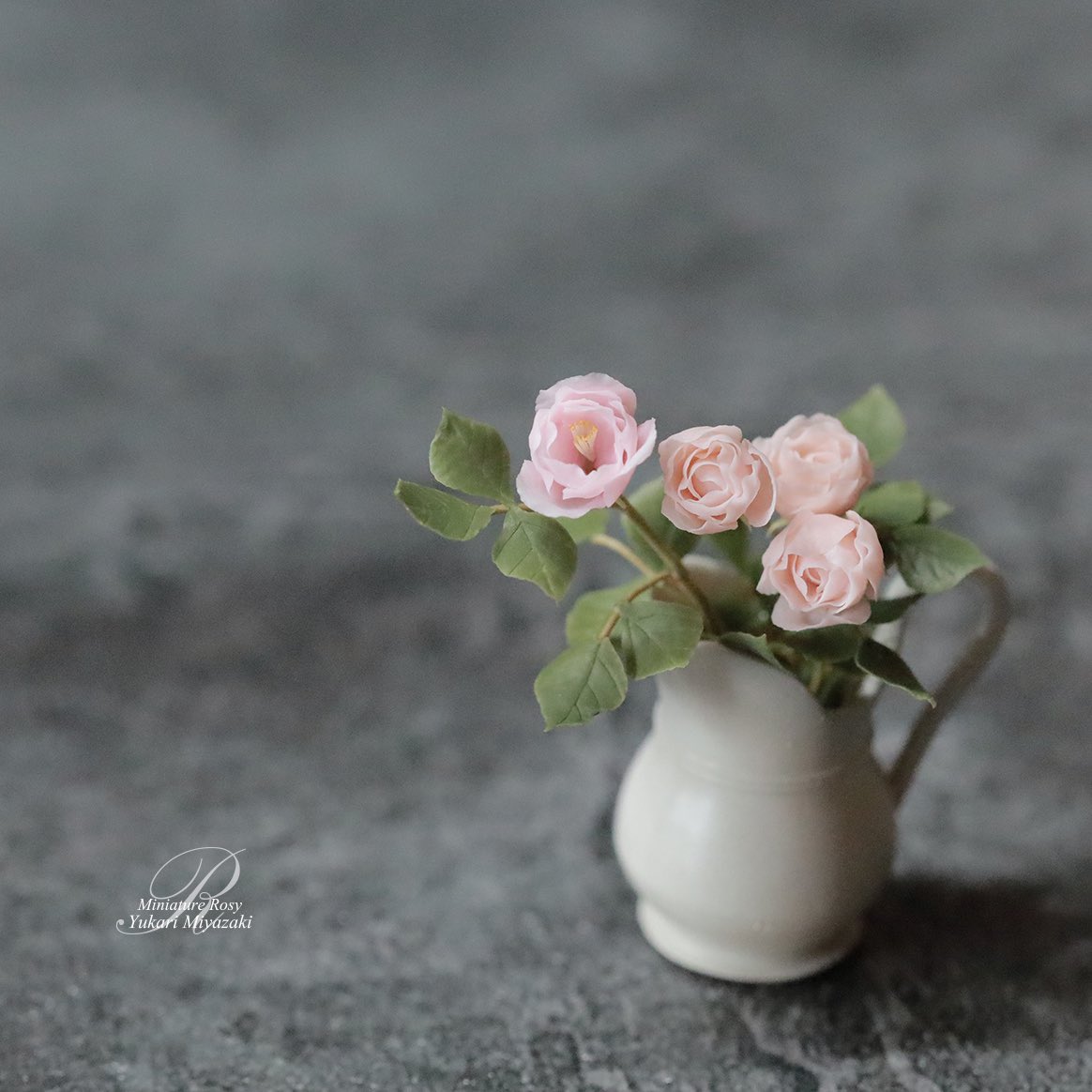 バラの鉢植え 12分の1サイズです 今日も暑いですね🥵 花もちも悪いし 夏はあまり好きじゃありません