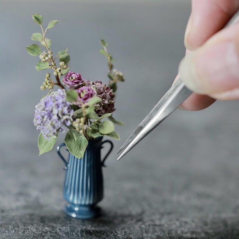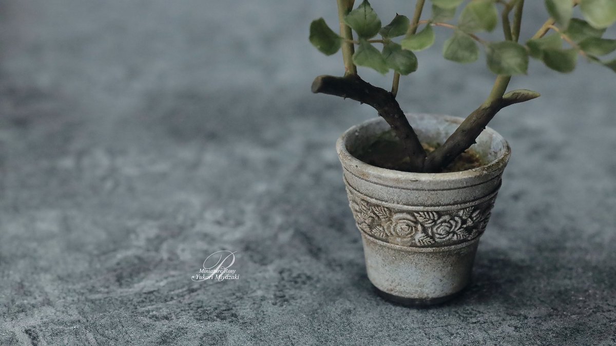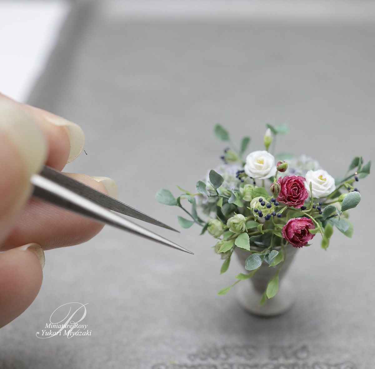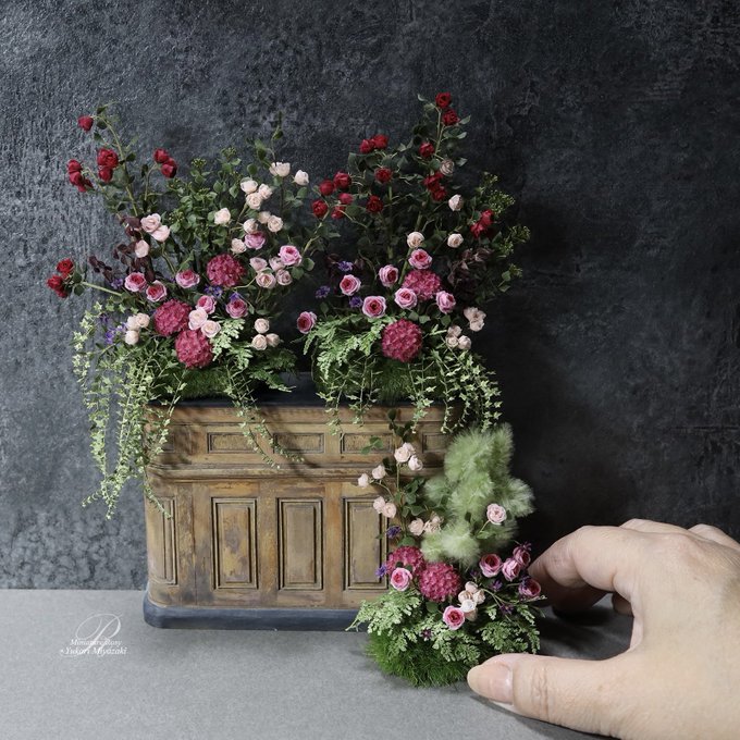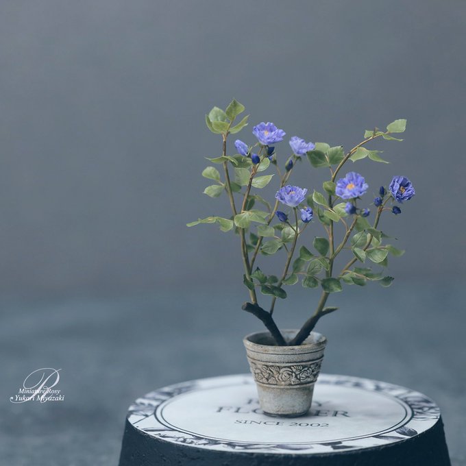 バラの鉢植え 12分の1サイズです 今日も暑いですね🥵 花もちも悪いし 夏はあまり好きじゃありません