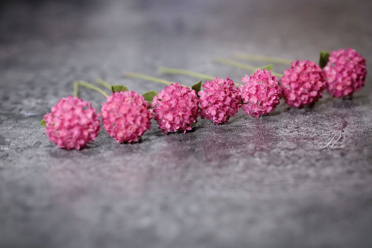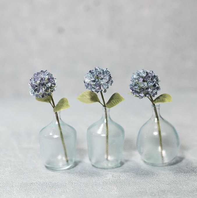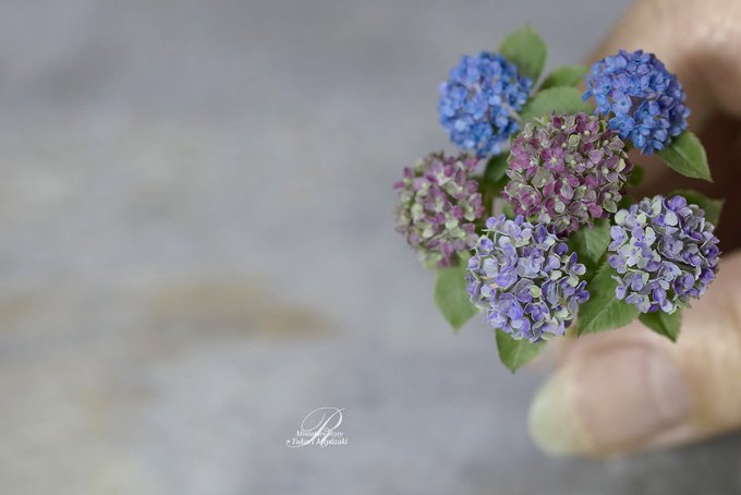 もうすぐアジサイの季節ですね 庭のカシワバアジサイの花芽を数えたらたった5個でした〜 大きくなりすぎたので昨年深く切ったから仕方ないけど ということでミニチュアアジサイを作りました