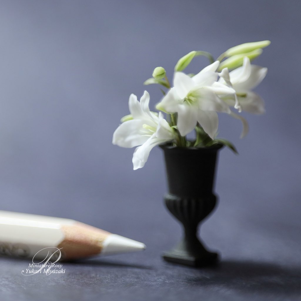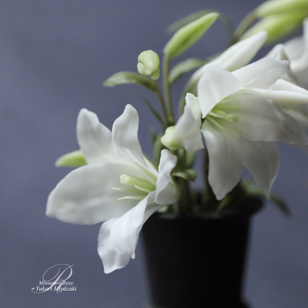 55 362 ミニチュアクレイフラワー カサブランカが咲きました 22/07/03 10:03