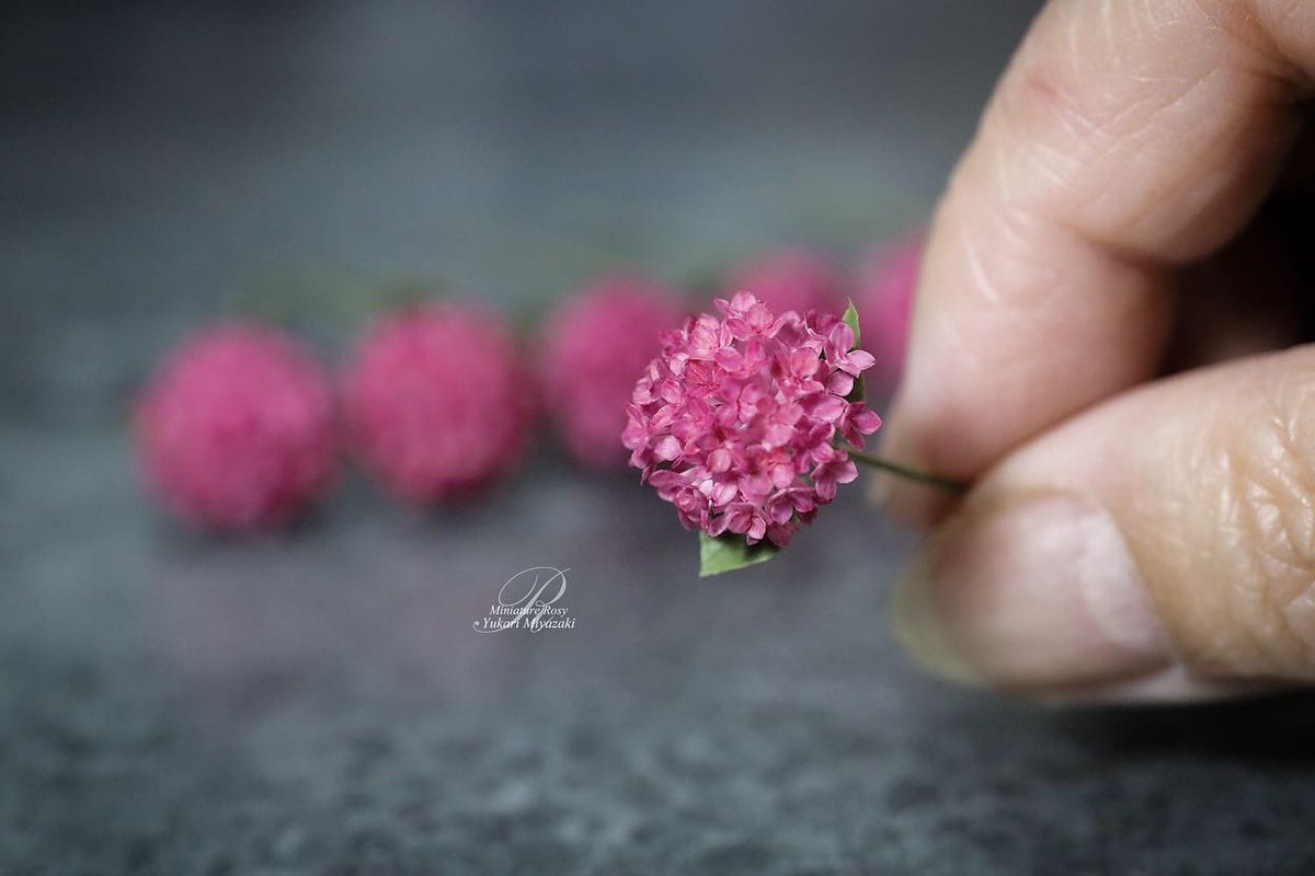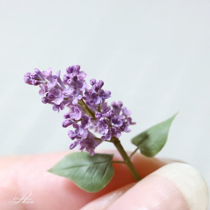 1/12 scale miniature clay flowers. lilac ライラック lilas リラ 和名は紫丁香花(ムラサキハシドイ) ハシドイって読むのですね🧐