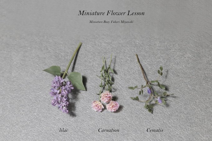 1/12 scale miniature clay flowers ライラック カーネーション クレマチス