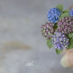 50 445 もうすぐアジサイの季節ですね 庭のカシワバアジサイの花芽を数えたらたった5個でした〜 大きくなりすぎたので昨年深く切ったから仕方ないけど ということでミニチュアアジサイを作りました 23/05/28 18:39