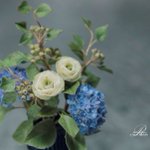 この十日余り取り組んでいたお花を花器に入れました 先日買った美濃焼の食器の深いブルーがとても綺麗で❤️ それを真似てみたのですが、やはり本物のようにはならず💦 もっと塗装力が欲しい