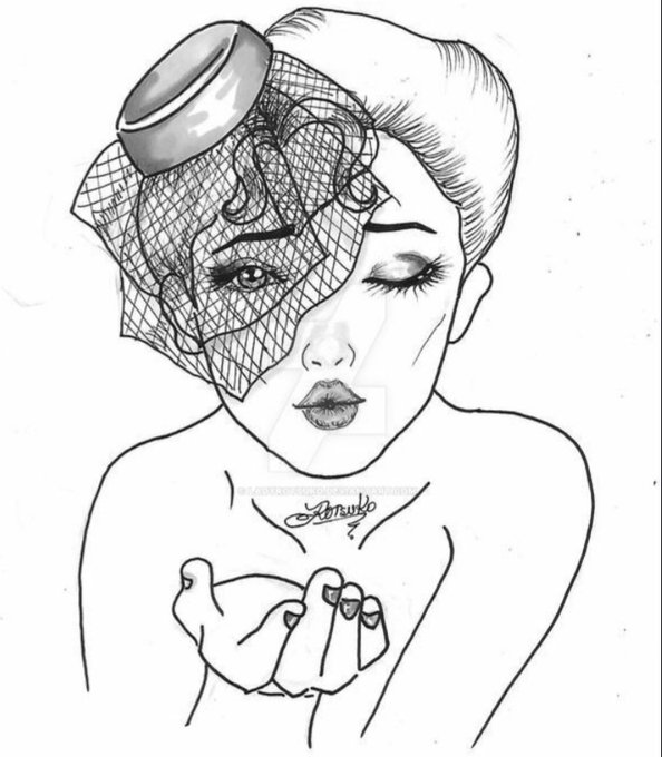 Ayer no alcancé a entintar. Día 9 #inktober2020 El tema era #throw o #lanzar En este caso, lanzar un beso 😘 #ladyrotsuko #kiss #pinup #pinupgirl #drawing #traditionalart #inktober
