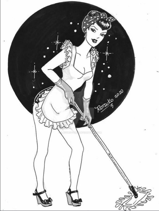 Día 10 #inktober2020 corresponde #hope #esperanza. Qué difícil, me acordé de "dignidad" en el capítulo de los Simpson 😅 pero dibujé "Qué linda te ves trapeando, Esperancita" #ladyrotsuko #kiss #pinup #pinupgirl #drawing #traditionalart #inktober