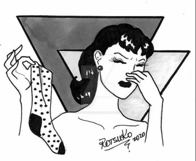 Día 11 #inktober2020 corresponde #disgusting #asqueroso. Pensé dibujar algo Gore, aunque nunca lo he hecho, pero decidí que lo más asqueroso es un calcetin maloliente #ladyrotsuko #sock #pinup #pinupgirl #drawing #traditionalart #inktober