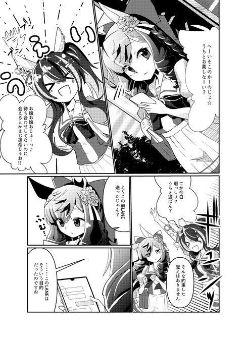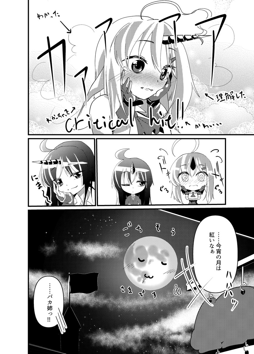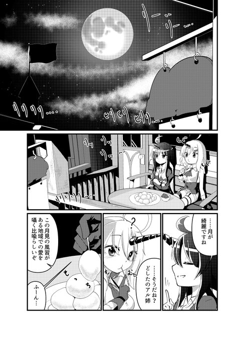 54 71 描けた。お月見をダシにいちゃいちゃするうちの子アルルとミラの漫画が。 22/11/09 17:11
