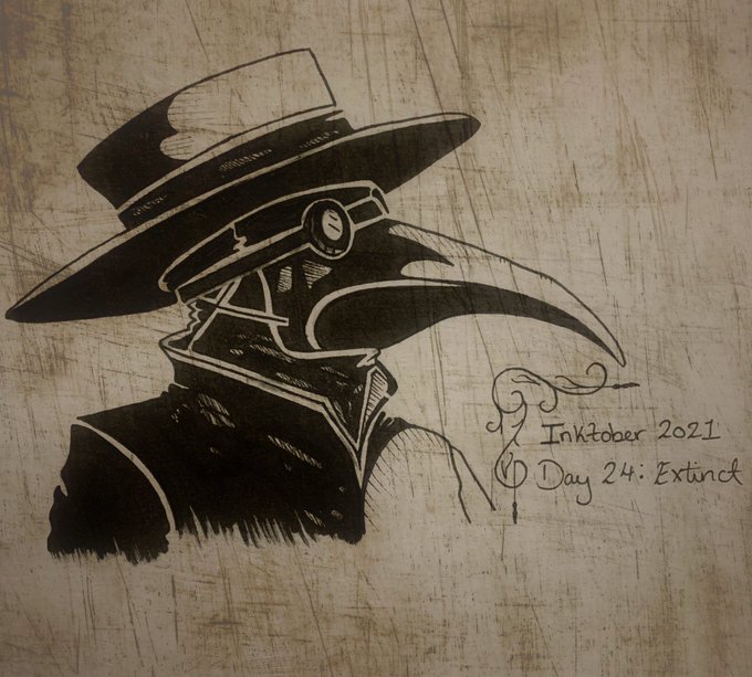 "They fancied themselves free, and no one will ever be free so long as there are pestilences." Inktober Day 24: Extinct #Inktober #inktober2021 #Extinct #PlagueDoctor