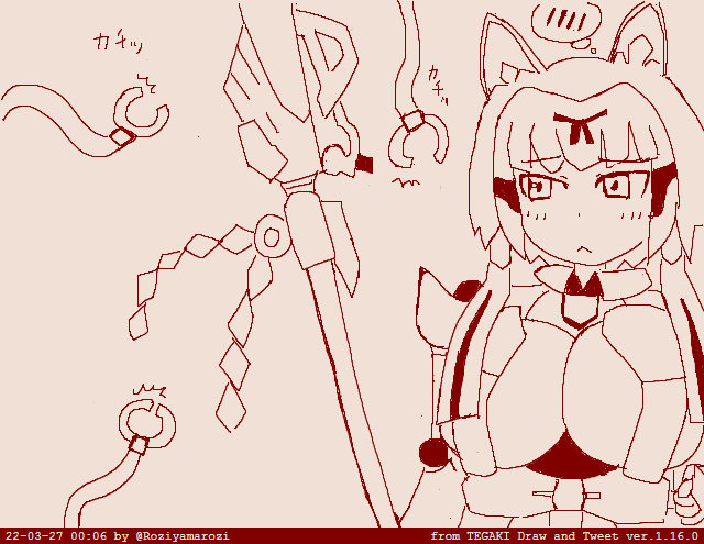 0 1 リリー届いて嬉しい記念 机にあったペーパーナイフを装備させてみた #ポリニアン #tegaki_dt 22/04/04 23:44