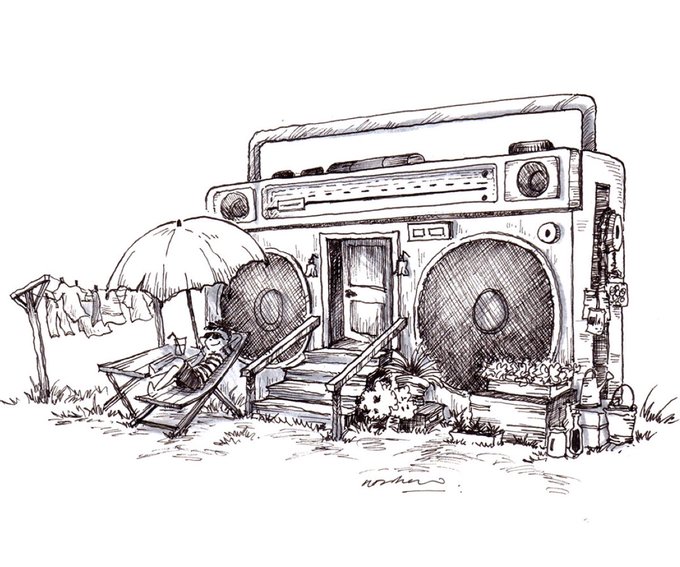 I couldn’t resist a “radio shack” as corny as it may seem haha...I had fun with this one. And if you live in a radio, is it like piped in music all day everyday? This dude seems happy..😜😝 #inktober2020 #inktober #inktoberday4 #radioshack #inktober52 #inkdrawing #inkdrawings