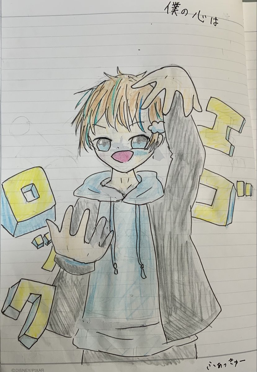 1 22 はぁ‘’ぁ‘’ーー #びびあーと #そらびび #そらびびの自由帳 #イラスト練習中 #イラスト 何か今回描いた紙が水彩色鉛筆(水?)と合わなかった \🥺あと修正する術が修正テープしか無くて悲惨なことになりました。でも、絵上手い人って何で描いても上手いよね! 21/12/12 22:45