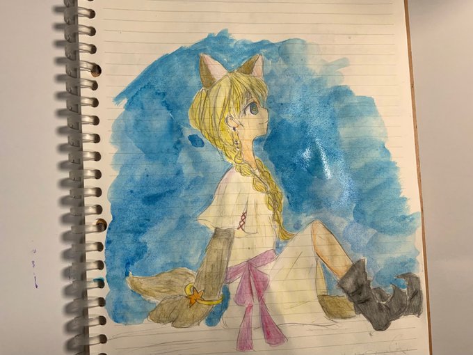 難しかったけど楽しかった😊 #イラスト #イラスト練習中 #アナログイラスト #アナログ絵 #ケモ耳 #リプ来た3つの絵文字でキャラデザする 🐾🌜💫