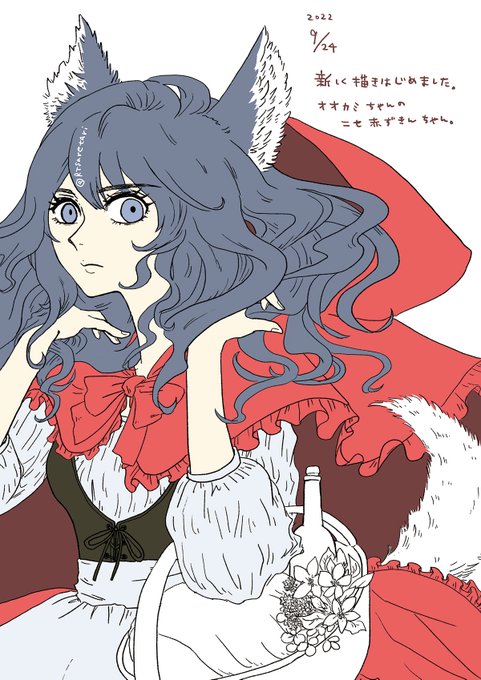 2 13 新しい絵を描き始めたよ また首に問題がある気がするので首まわりが苦手なんだな… これはあまりしつこく描き続けないつもり…🐕🦺 #イラスト #赤ずきん #創作 #オオカミ 22/09/26 16:25