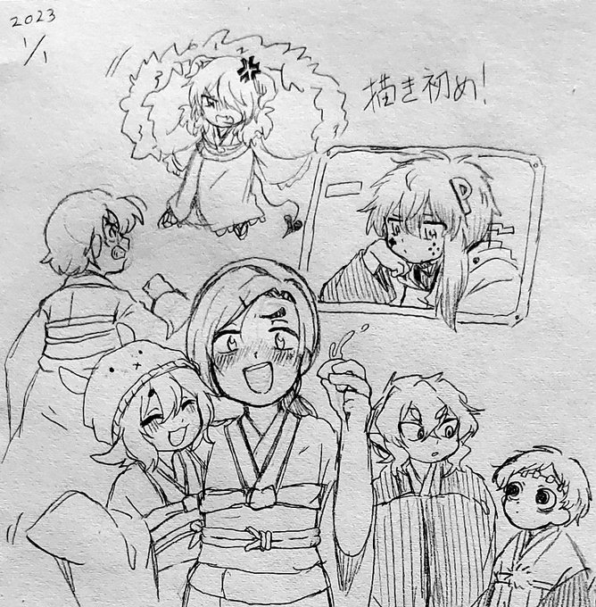 2 8 描き初め!! 今日は参拝に行って、人生初の御神酒飲んだったぞ😊 23/01/01 23:59