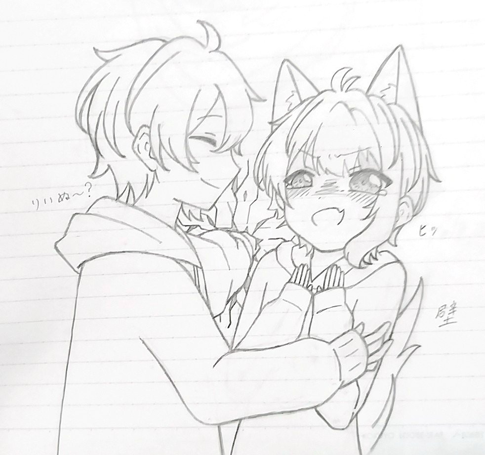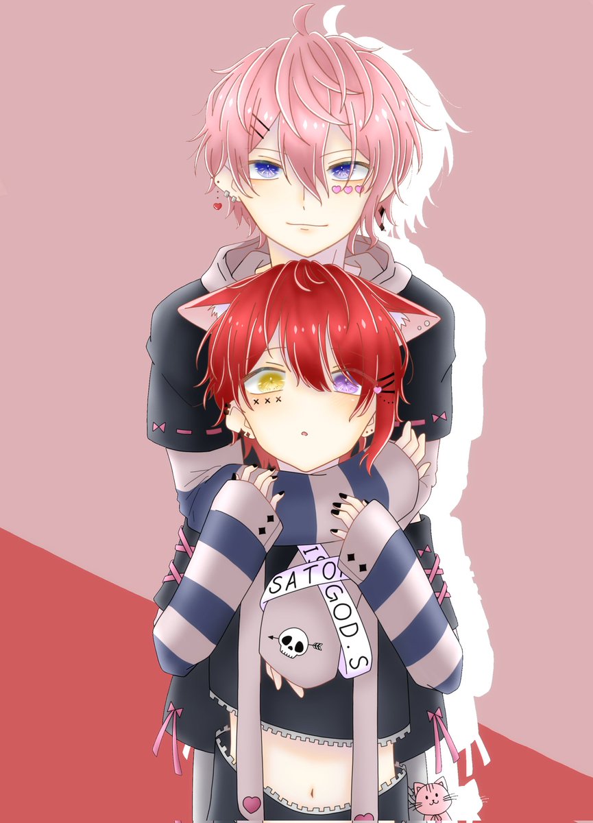 背景無し絵➀➁【💗/💗❤️】 猫耳と尻尾が生えちゃったさとみくんが莉犬くんに遊ばれた結果さとみくんに怒られた話。 ※主の妄想です。 #りいぬぎゃらりー #さとみギャラリー